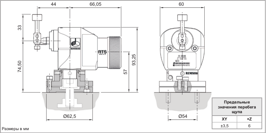 Возможна дополнительная установка пальцев Spirol® для обеспечения повторяемости установки датчика при повторном монтаже